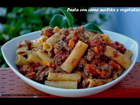 Pasta rigatoni con carne molida y vegetales - Macarrones Con Carne Picada Y Verduras - Una facia y deliciosa receta de pasta rigatoni con carne molida y muchos vegetales aqui en cocinemosjuntos. Esta pasta se sirve con queso rallado encima y se ...