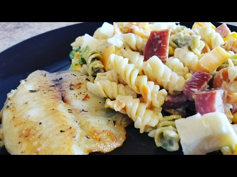 Ensalada de pasta para fiesta 馃馃槃 - Pastas Para Cumpleaos - super facil de hacer. Escurre bien la pasta. Coloca la pasta cocida, jam贸n, miz y aji, cebolla en una ensaladera. Aparte, mezcla mayonesa con la pasta, ...