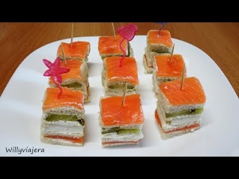 MONTADITOS DE SALMÓN AHUMADO. (APERITIVO NAVIDEÑO) - Bocadillo De Salmon Ahumado - Montaditos de pan bimbo y salmón ahumado. Aperitivo navideño con pan de molde, salmón, queso y pepinillo.Empezamos la campaña navideña con un ...