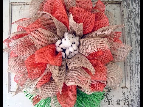 Mesh Flower Tutorial with Poly Jute & Poly Burlap by Trendy Tree - Poly Burlap Mesh Yellow - Video wreath tutorial by Trendy Tree using a pencil wreath, poly jute and poly burlap Deco mesh, cotton boll spray and RAZ branches. Supplies available at ...