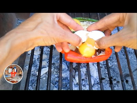 MORRÓN RELLENO A LA PARRILLA - Morron Asado Relleno - Aquí te enseño como hacer morrón relleno a la parrilla, con jamón, queso, huevo y morcilla. Que lo disfrutes!