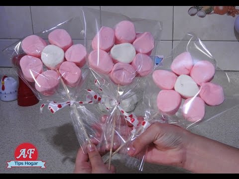 Florecitas de Bombon para San Valentin - Paletas De Malvavisco - ingredientes y material bombones palillos para brochetas , picadientes , agua , bolsitas de celofan , liston y estambre Correo de negocios Email: ...