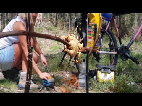 Pollo en un Palo al Fuego Primitivo🔹Supervivencia y Pedal #bushcraft #cicloturismo #supervivencia - Pollo Al Fuego - Me detuve en el bosque para hacer un fuego y asar un pollo entero clavado en un palo y le puse dentro ajo picado, aceite de oliva, kumquats o naranjas ...